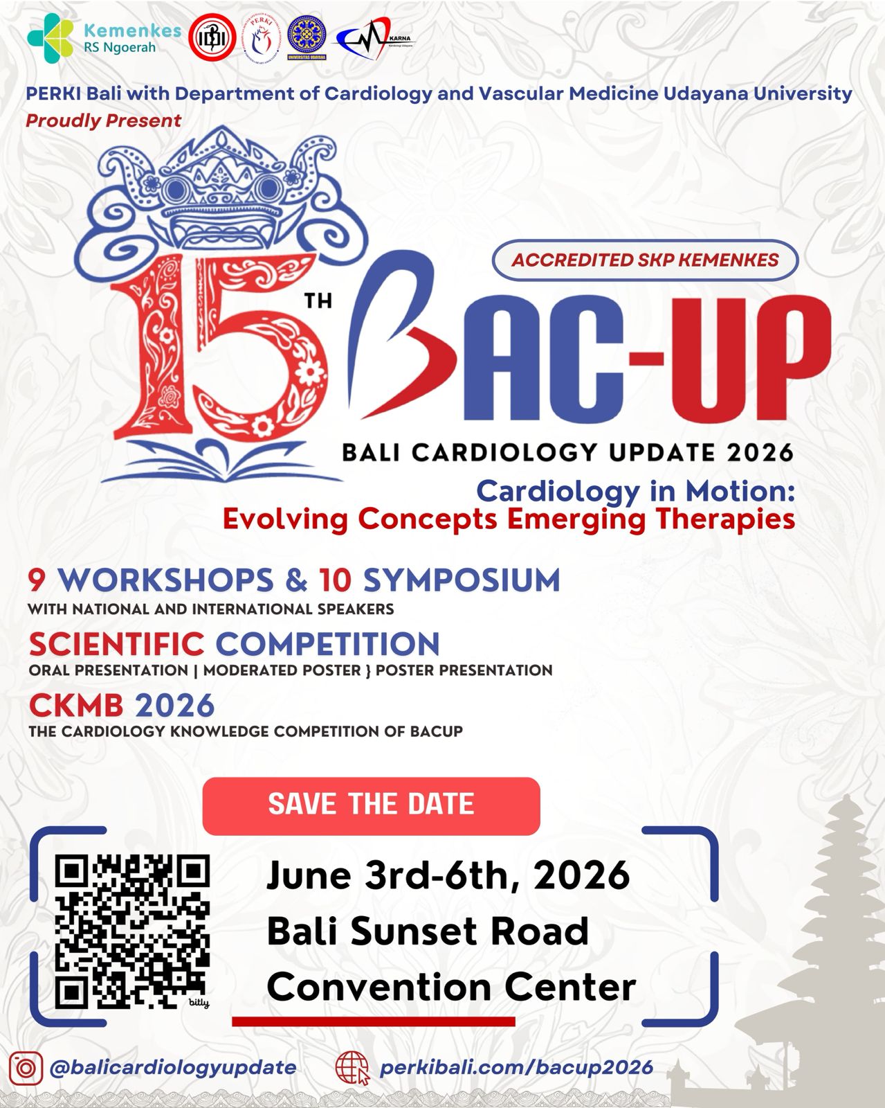 From June 3rd to 6th, 2026, we invite the global medical community to converge at the prestigious Bali Sunset Road Convention Center. As the largest cardiology scientific event in Bali, BAC-UP 2026 serves as a premier sanctuary for knowledge exchange, clinical innovation, and professional fellowship.